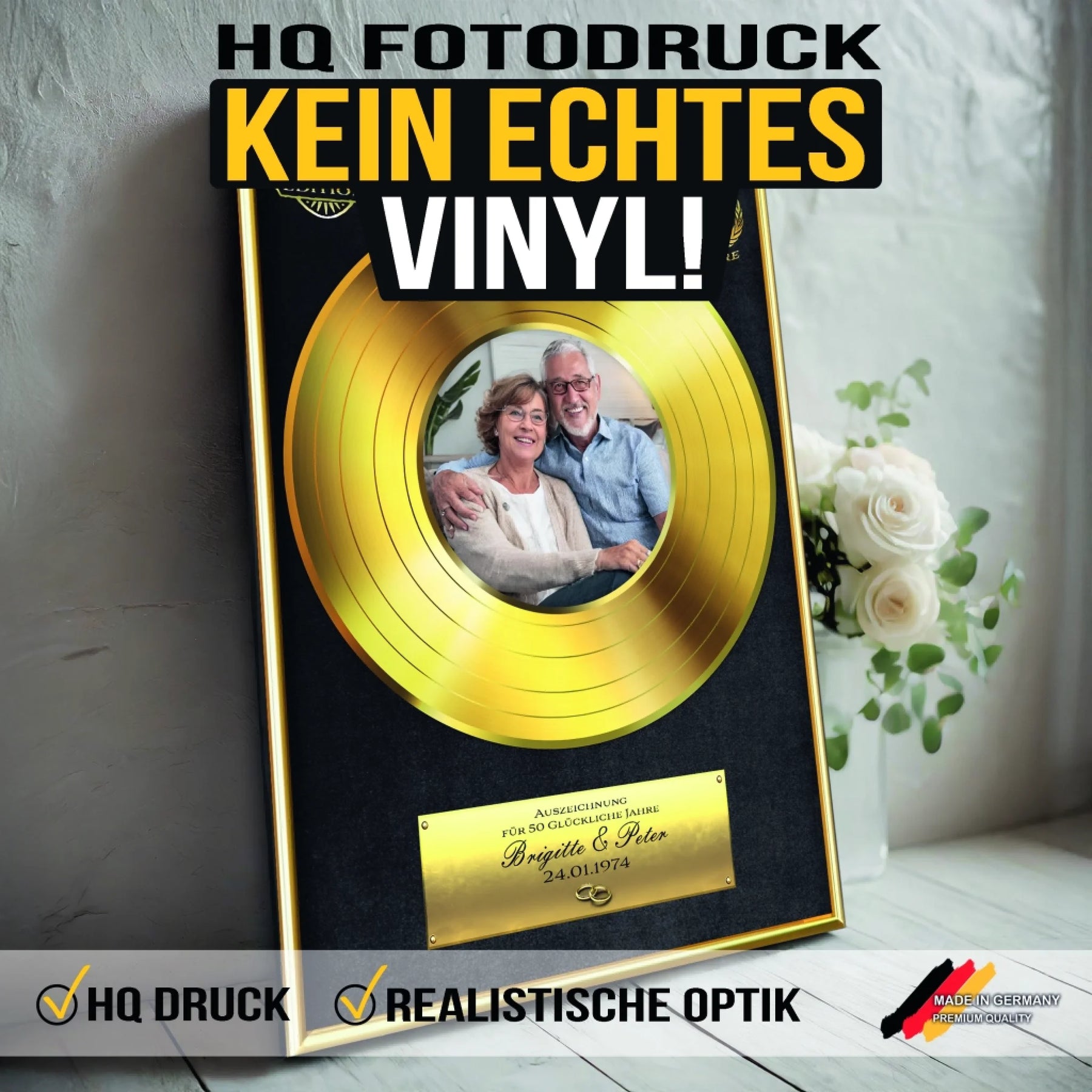 • ✍ Mit Wunschnamen & Hochzeitsdatum – Die Schallplatte wird individuell mit den Namen des Paares und dem Hochzeitsdatum personalisiert – ein einzigartiges Erinnerungsstück für die Ewigkeit.